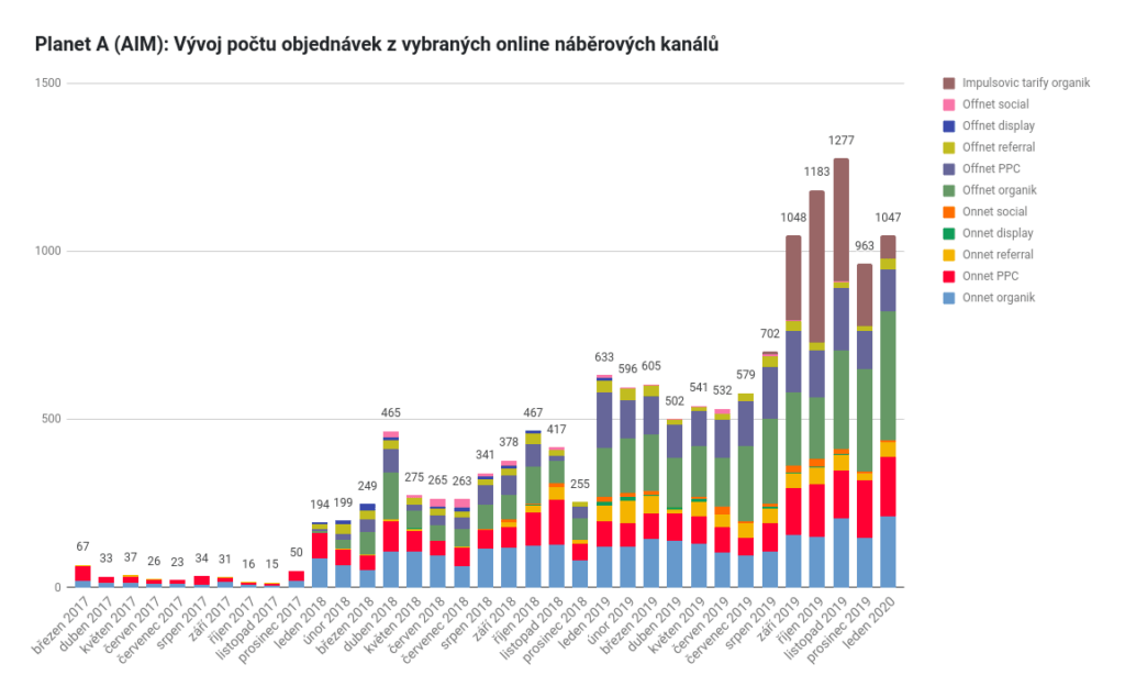 Nezávisle na Impulsovic tarifech rovněž rostly objednávky z PPC díky důsledné správě kampaní. Zvyšování objednávek z organiku nadále pokračovalo díky tvorbě obsahu a efektivnímu linkbuildingu.